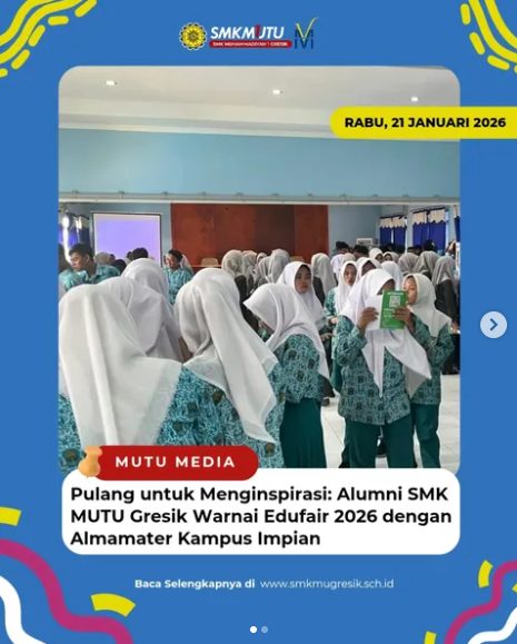 Gresik – Semangat melanjutkan pendidikan ke jenjang yang lebih tinggi menyelimuti aula SMK Muhammadiyah (21/01/26). Sekolah sukses menggelar agenda tahunan Edufair dengan konsep yang berbeda, yakni menghadirkan langsung para alumni yang kini tengah menempuh studi di berbagai Perguruan Tinggi Negeri (PTN) dan Swasta (PTS) ternama di Jawa Timur.