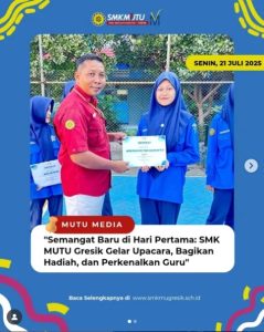 Semangat Baru di Hari Pertama : SMK MUTU Gresik Gelar Upacara, Bagikan Hadiah, dan Perkenalkan Guru