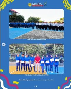 Gresik, 21 Juli 2025 — Mengawali hari pertama kegiatan belajar mengajar (KBM) tahun pelajaran 2025/2026, SMK Muhammadiyah 1 Gresik (SMK MUTU) menggelar upacara rutin mingguan dengan penuh semangat dan antusiasme di halaman sekolah. Kegiatan ini menjadi momentum penting yang tidak hanya menandai dimulainya tahun pelajaran baru, tetapi juga disemarakkan dengan pembagian hadiah lomba classmeeting dan perkenalan guru-guru kepada seluruh siswa-siswi. Upacara dipimpin langsung oleh Kepala SMK MUTU Gresik, Bapak Mukromin Latif, S.Pd., yang dalam amanatnya mengajak seluruh warga sekolah untuk memulai tahun pelajaran ini dengan semangat baru dan tekad yang lebih kuat. “Tahun pelajaran baru adalah waktu yang tepat untuk memperbaiki diri, meningkatkan semangat belajar, dan membangun kebersamaan antarwarga sekolah. Mari jadikan tahun ini sebagai momentum untuk tumbuh lebih baik, berprestasi, dan berkarakter,” ujar beliau dalam sambutannya. Usai upacara, suasana semakin meriah dengan pengumuman dan pembagian hadiah bagi para pemenang lomba classmeeting yang telah dilaksanakan pada akhir semester lalu. Para siswa yang meraih juara tampak bangga dan bahagia saat menerima penghargaan secara langsung dari pihak sekolah. Selain itu, momen ini juga dimanfaatkan sebagai ajang perkenalan wali kelas baru, dan guru-guru yang mengalami rotasi mengajar di kelas berbeda. Satu per satu guru diperkenalkan di hadapan seluruh siswa dan disambut hangat dengan tepuk tangan serta semangat positif dari para peserta didik. Kegiatan ini diharapkan menjadi awal yang baik bagi seluruh civitas akademika SMK MUTU Gresik untuk menciptakan lingkungan belajar yang lebih positif, produktif, dan kolaboratif sepanjang tahun pelajaran 2025/2026.